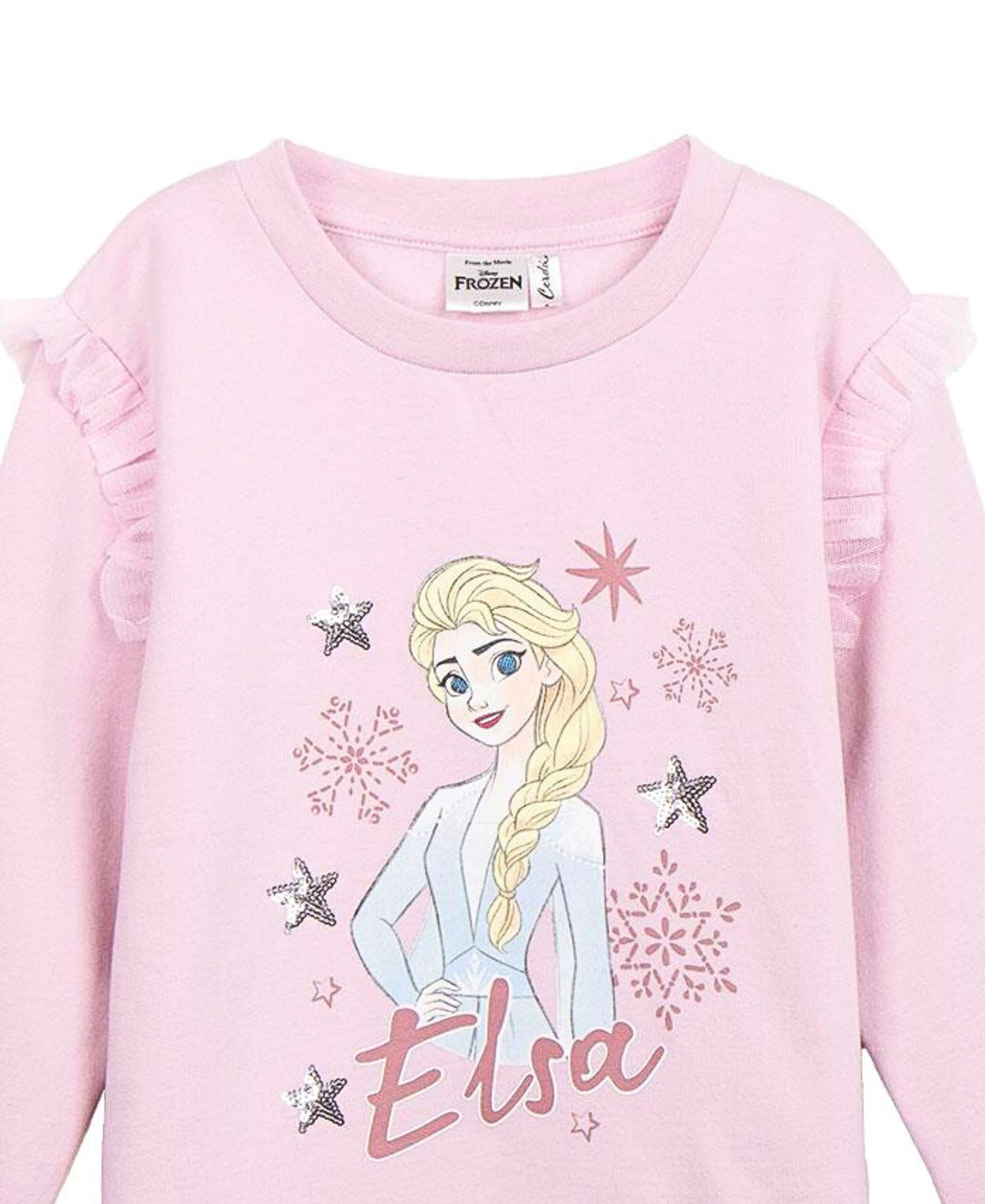 - Stylischer Elsa-Druck mit glitzernden Schneeflocken und Sternen.