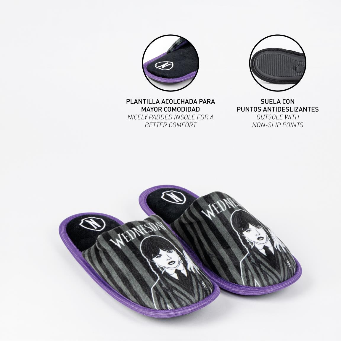- Offene Hausschuhe im Wednesday-Design